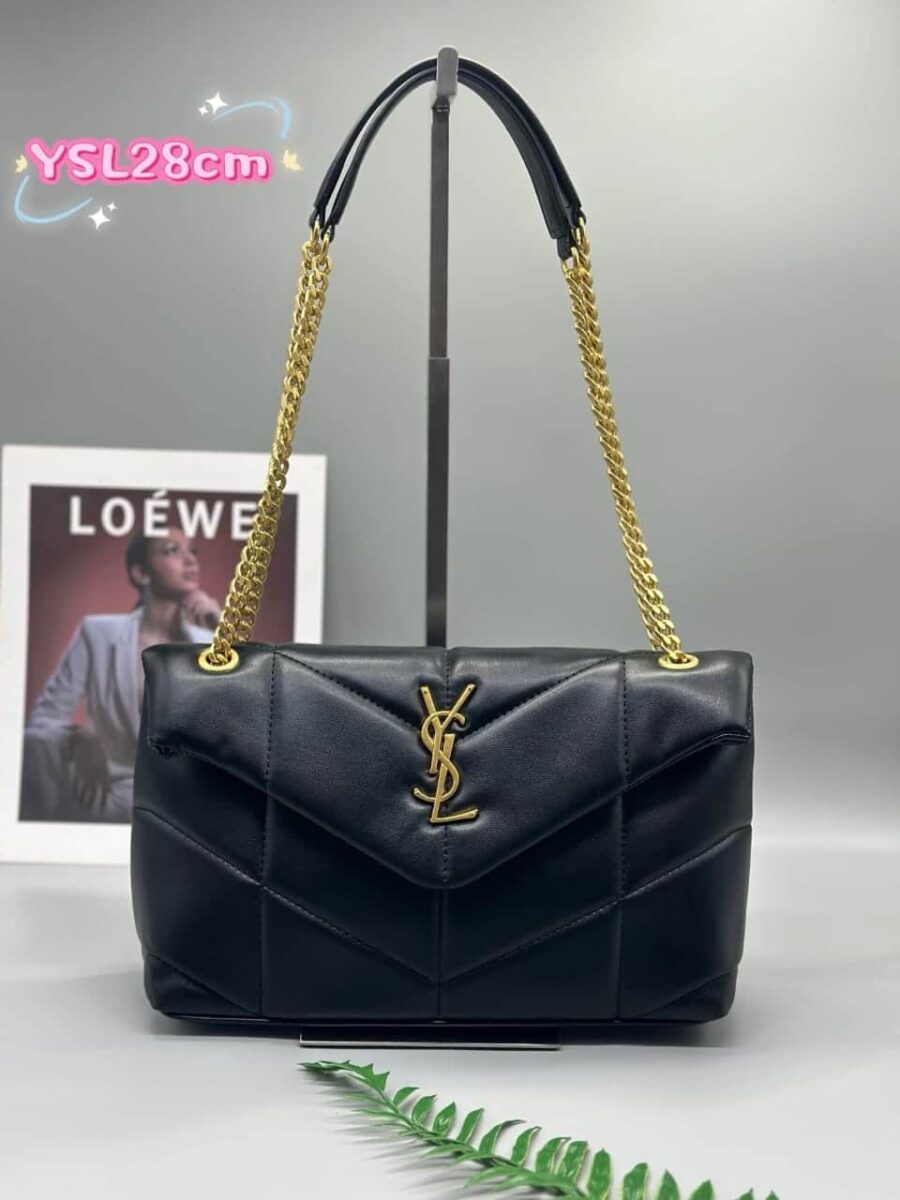 SAINT LAURENT LOULOU PUFFER SMALL SHOULDER BAG IN BLACK 28CM