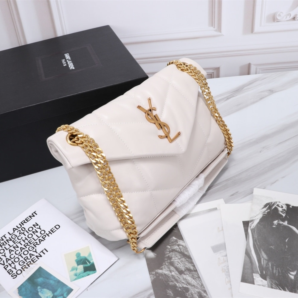 Saint Laurent Puffer Small In Leather Gold Hardware White 5774761EL079207 / 11.4 x 6.6 x 4.3 inches / Can use Shoulder or Crossbody Bag / Daily Bag for Women