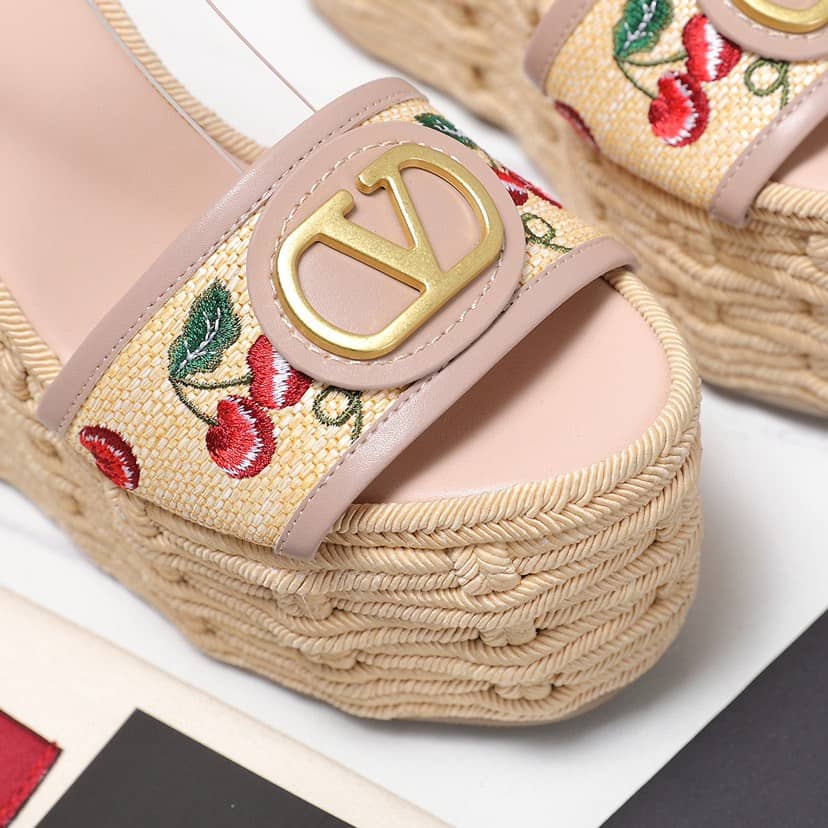 Valentino Garavani Natural Logo Wedges Sandal Beige 6W0S0Ly9Cec32H
