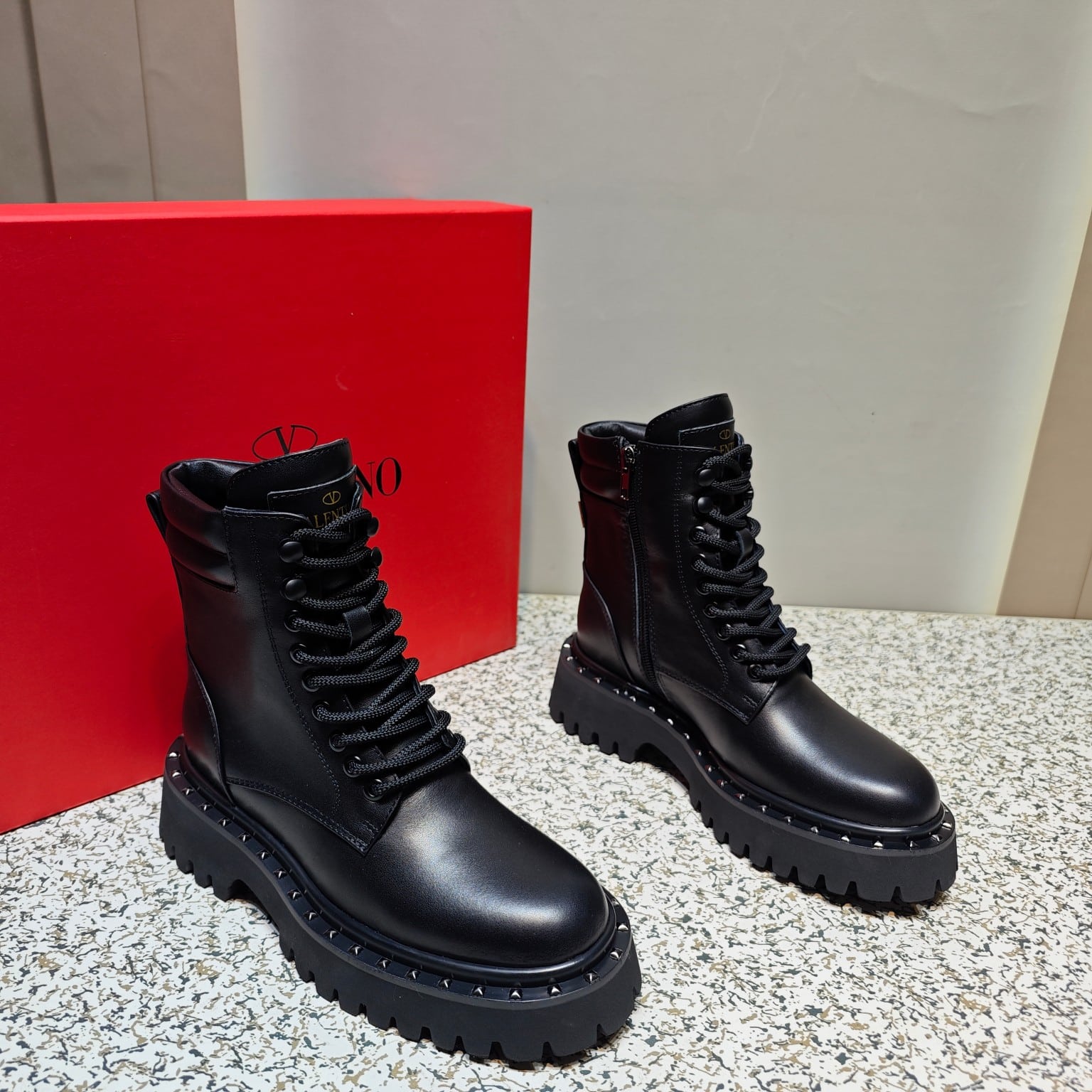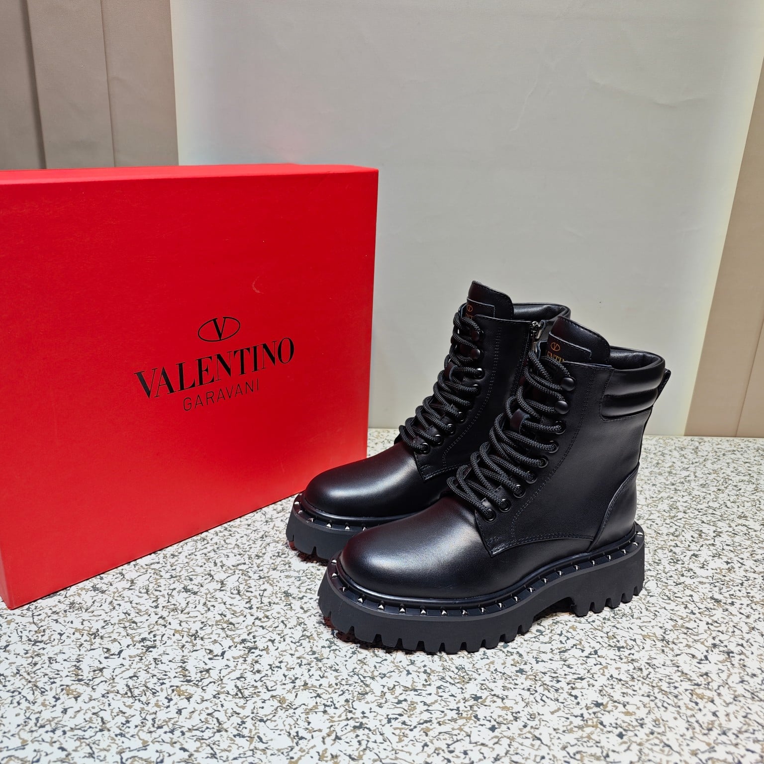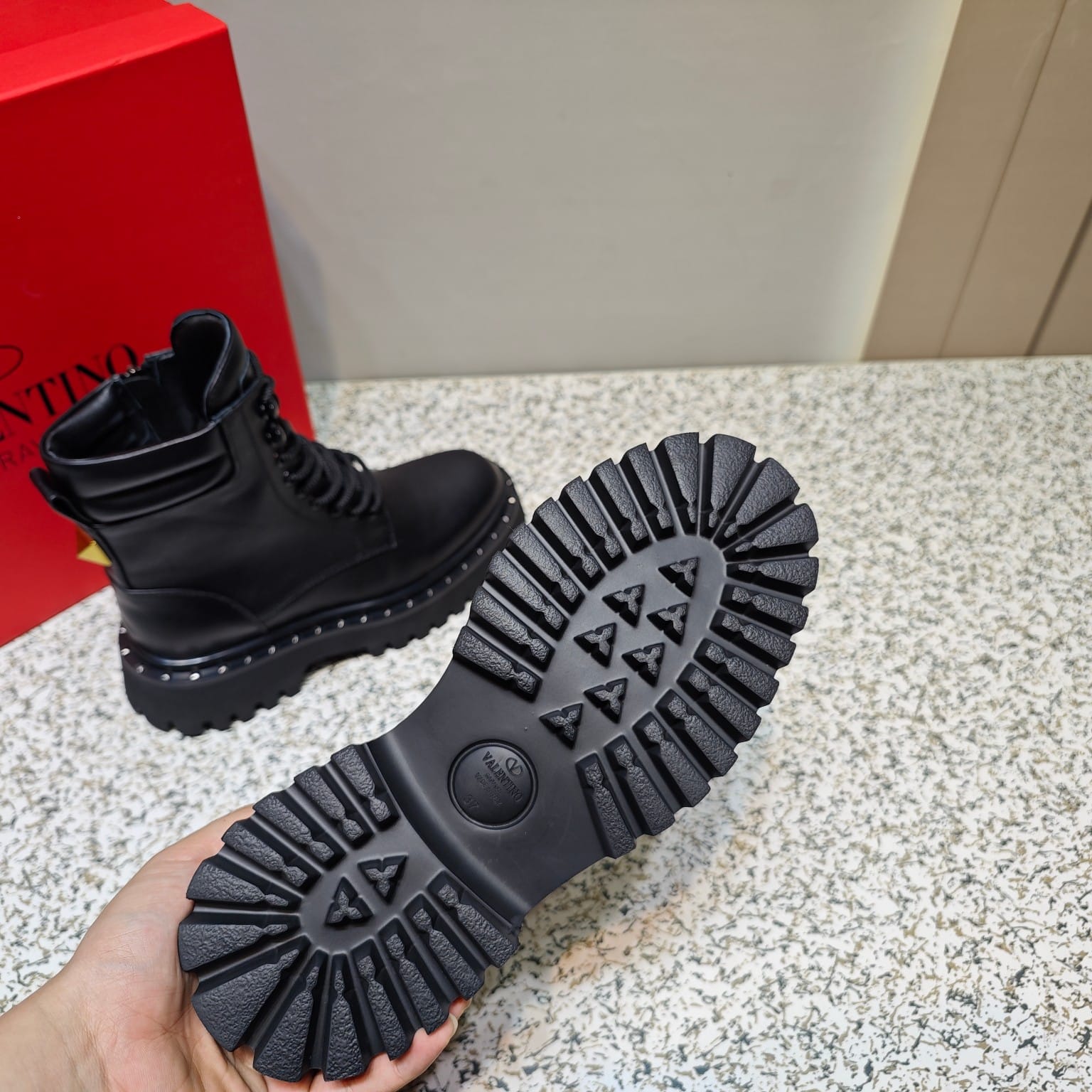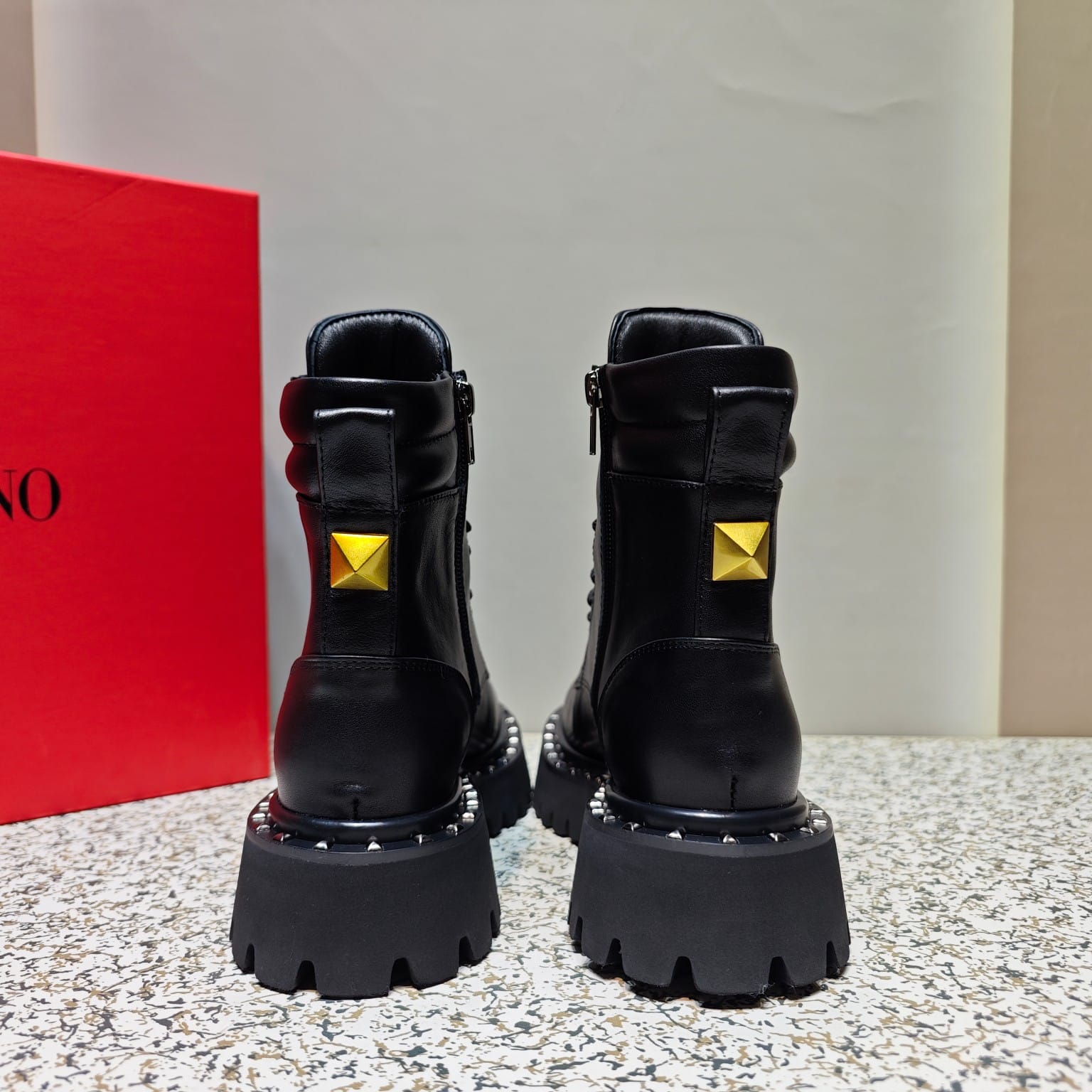 VALENTINO GARAVANI ROCKSTUD COMBAT BOOT ROMAN STUD BLACK