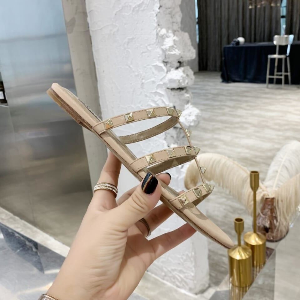 Valentino Garavani Rockstud Flat Slide Sandal Beige 5W2S0C49Vod P45