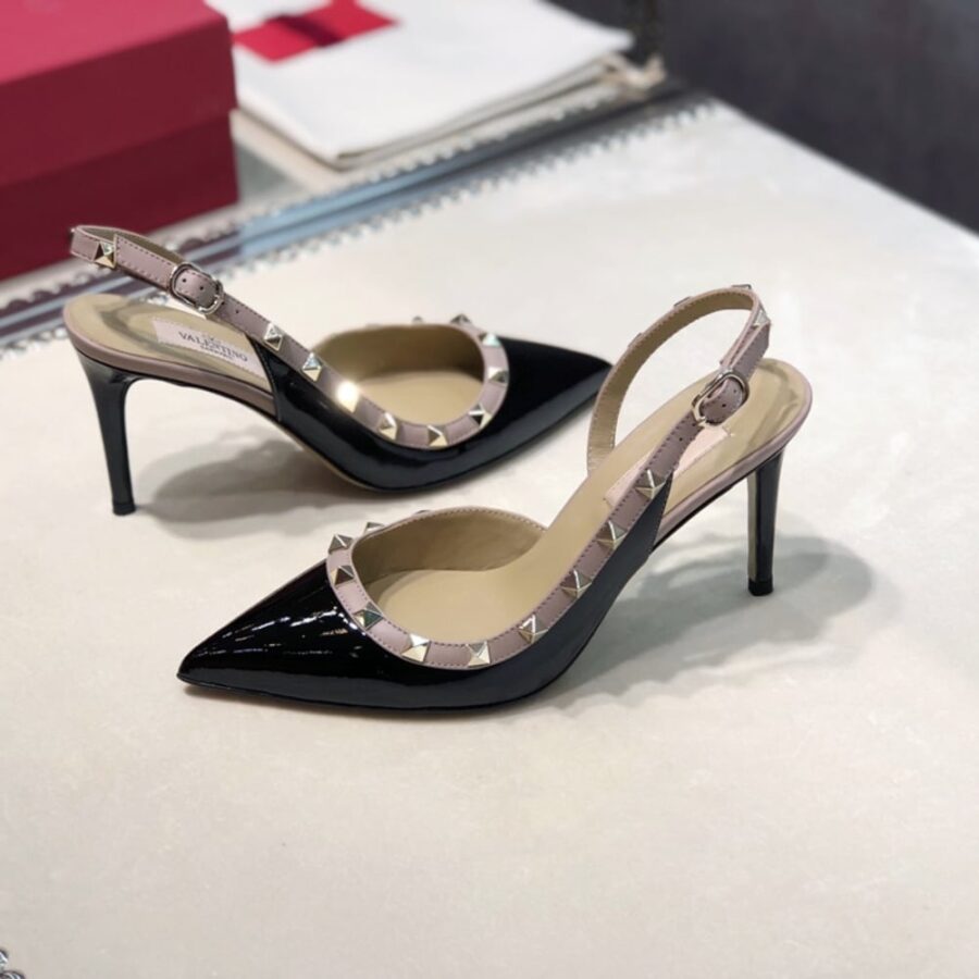 VALENTINO GARAVANI ROCKSTUD PATENT LEATHER STRAP PUMP BLACK