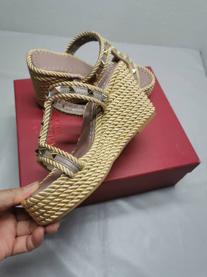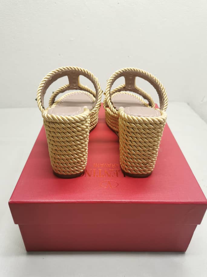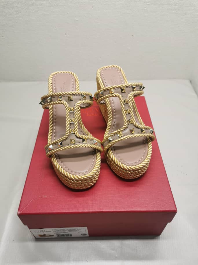 VALENTINO ROCKSTUD WEDGE IN BEIGE