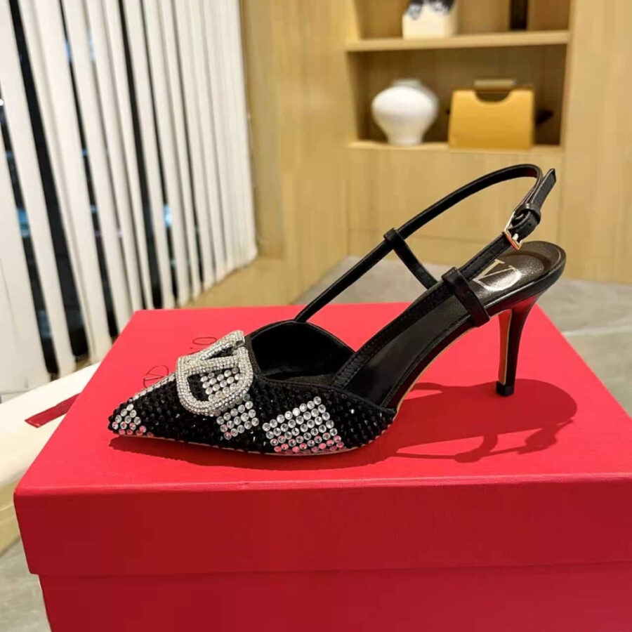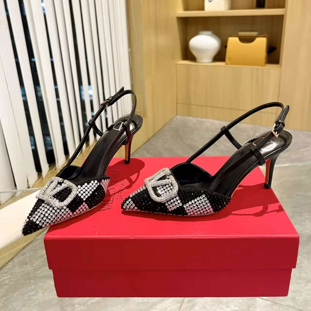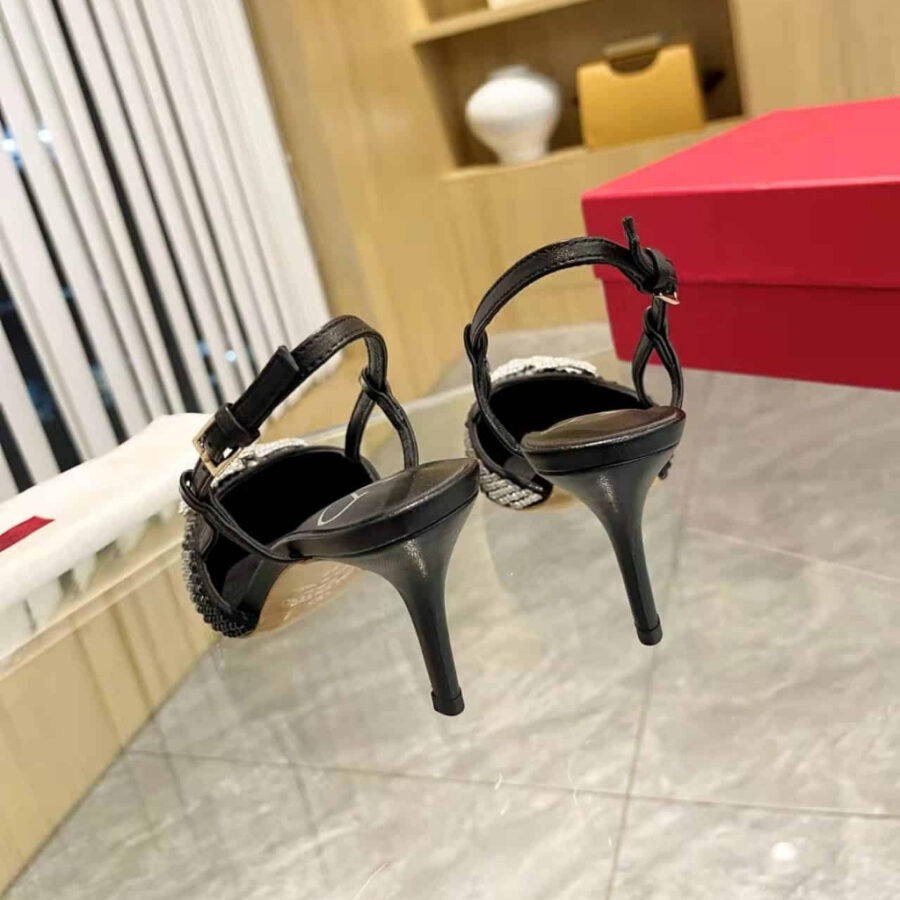 1:1 Replica Shoes – Valentino Vlogo Signature Slingback Pump Strap Crystal Black 3W0S0R01EWK ZRN