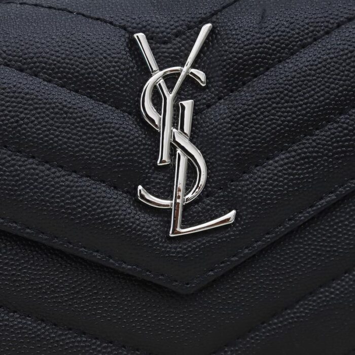 YSL MULTI-FOLDED WALLET IN GRAIN DE POUDRE EMBOSSED LEATHER BLACK 414404BOW021000